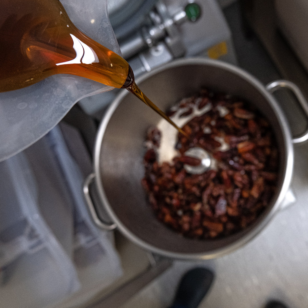 Ahornsirup ist der eingedickte Saft von kanadischen Ahornbäumen also ein natürliches und veganes Produkt.